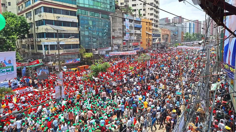 অন্যদিকে বিএনপির নেতাকর্মীদের পদচারণা ও স্লোগানে মুখর হয়ে উঠেছে নয়াপল্টন। নেতাকর্মীদের জমায়েত ফকিরাপুল থেকে কাকরাইল মোড় পর্যন্ত ছড়িয়ে পড়েছে। নয়াপল্টন এলাকা হয়ে সব ধরনের যানবাহন চলাচল বন্ধ হয়ে গেছে।