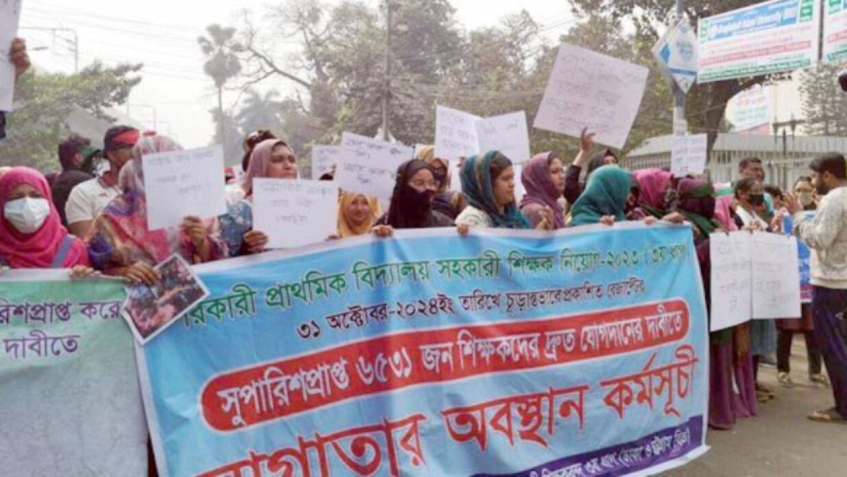 রাজধানীর শাহবাগে আজও অবস্থান কর্মসূচি পালন করছেন সরকারি প্রাথমিক বিদ্যালয়ের সহকারী শিক্ষক পদে নিয়োগ বাতিল হওয়া তৃতীয় ধাপের প্রার্থীরা।