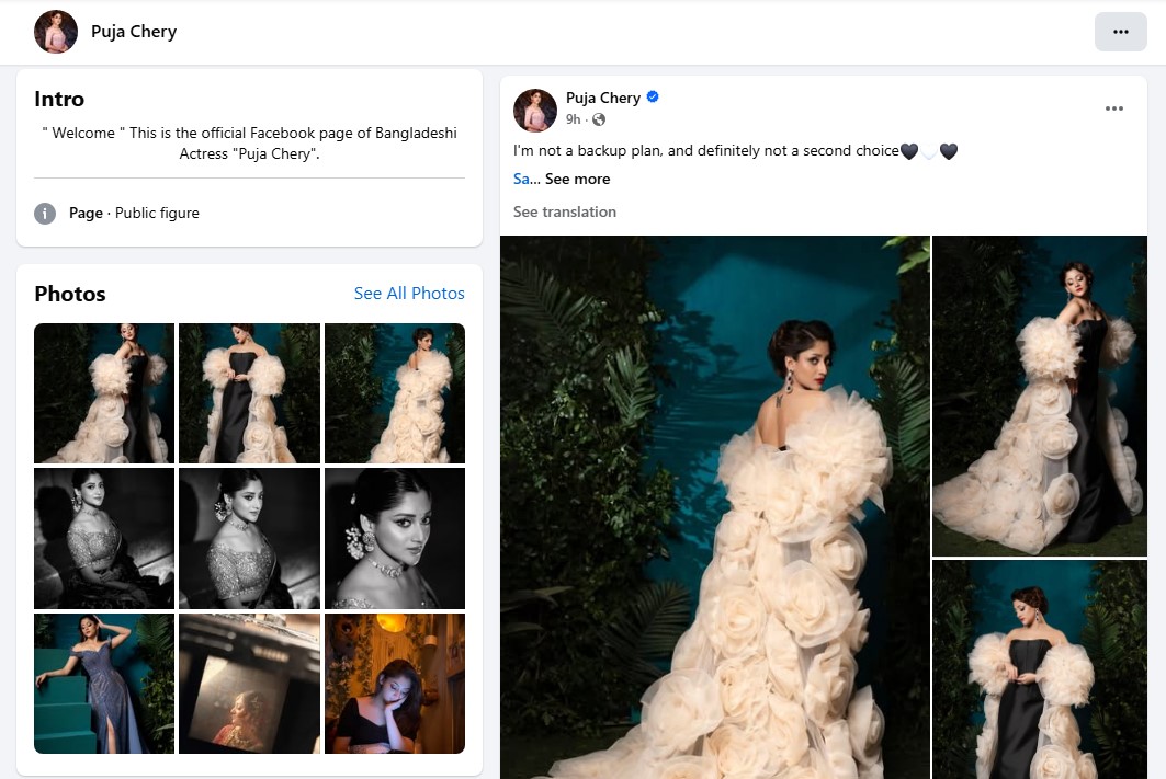 ফেসবুক পোস্টে পূজা চেরি, আমি কারো দ্বিতীয় পছন্দ নই